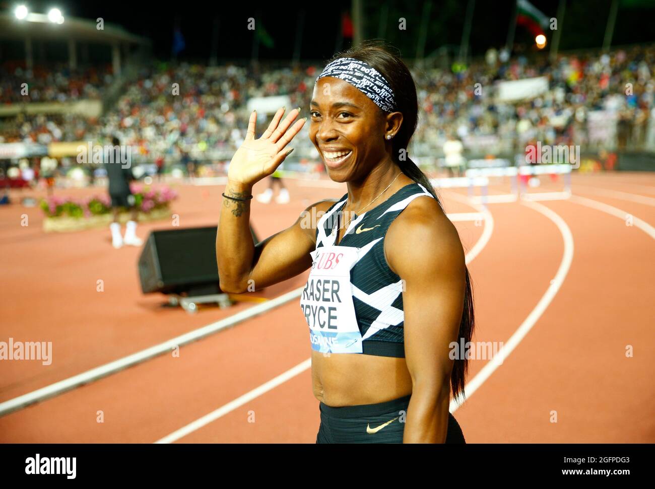 Shelly-Ann Fraser-Pryce wins the womens 100m at the Wanda Diamond League Series in Lausanne Switzerland.
